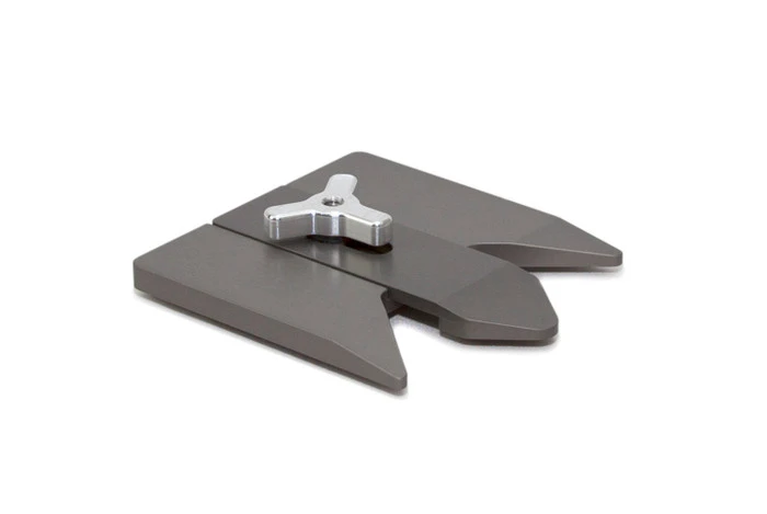 The Slide Guide gives you 2 points of contact on the knife. This improves blade stabilization and allows quicker, more repeatable blade placement. One piece extends from one edge of the blade table to the other, while the center piece slides back and forth independently and can lock in to position to accommodate a wide variety of blade shapes and sizes. It works well by itself, but when combined with a magnetized blade table it makes sharpening on the Edge Pro knife sharpener easier than ever before. Â