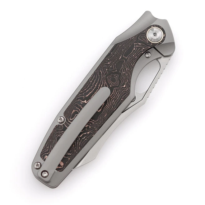 Maxace Beetle-S Slip Joint Folding Knife Titanium/Carbon Fiber Inlay Handle M390 Plain Edge MBTS02