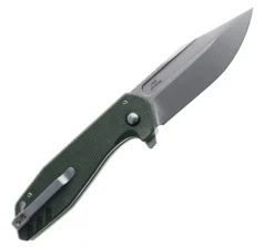 Civivi Qubit Folding Knife Green Aluminum Handle Damascus Drop Point Plain Edge C22030E-DS1