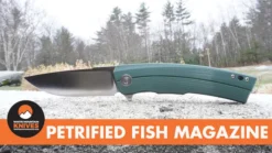 Petrified Fish Magazine Folding Pocket Knife Blue G10 Handle D2 Plain Edge Satin Finish PF-P02B