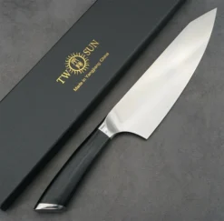 TwoSun Kitchen Chef Fixed Blade Knife Black G10 Handle 14C28N Plain Edge TS966-14C28N
