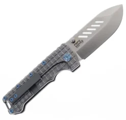 PMP Knives Kodiak Beast Pocket Knife Frag Gray/Blue Hardware Titanium Handle M390 Steel Blade