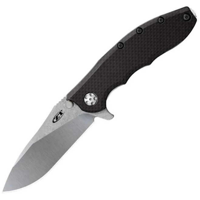 Black Carbon Fiber Handle/Stonewash Finish Titanium Back Handle